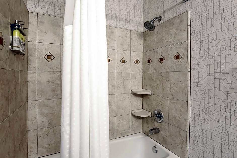 This room features a cable TV, a microwave, a small refrigerator and an private bathroom with a hairdryer.